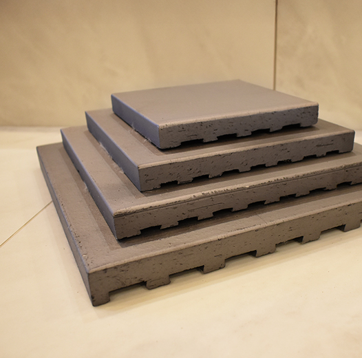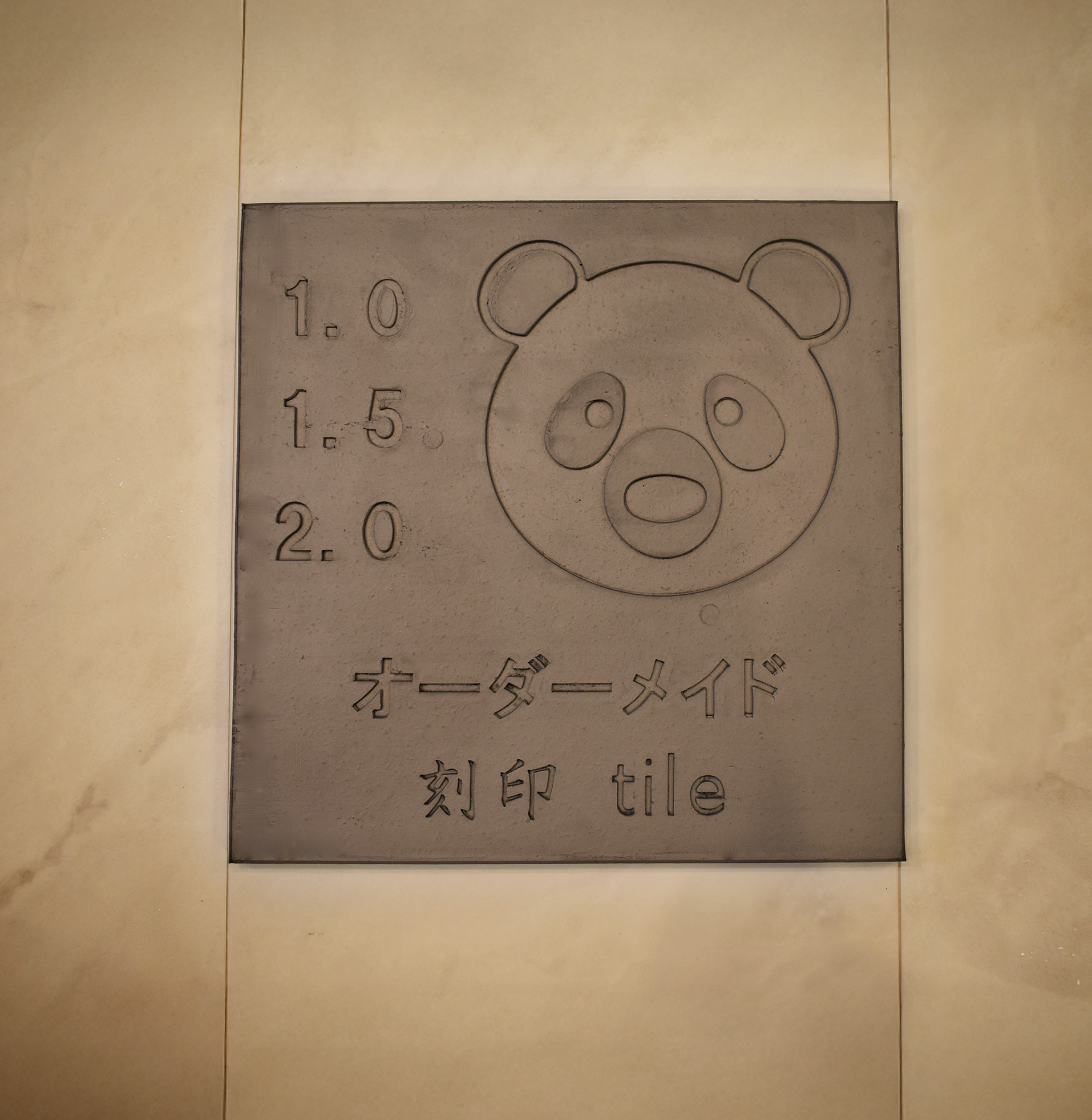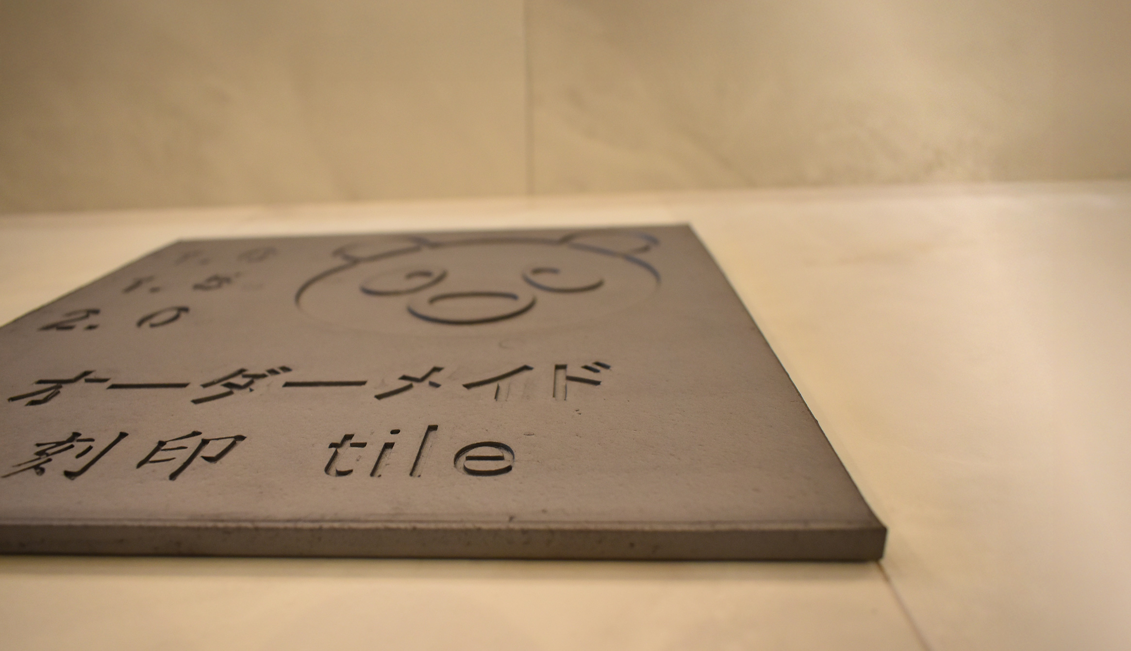 オーダーメイド刻印瓦タイルとは、300×300mmのプレス成型する面型にお客様の要望するロゴ、文字、模様等デザインの凹凸を施してプレスすることによりオリジナルなタイルを製造することができるサービスです。